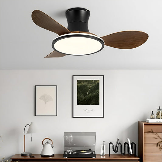 Modern Nordic Minimalist Wood Grain Reverse 6-Speed Inverter Ceiling Fan Light