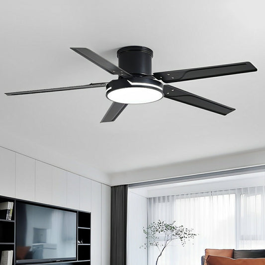 Modern Iron Five-leaf 6-speed Reverse Fan Dimming Ceiling Fan Light