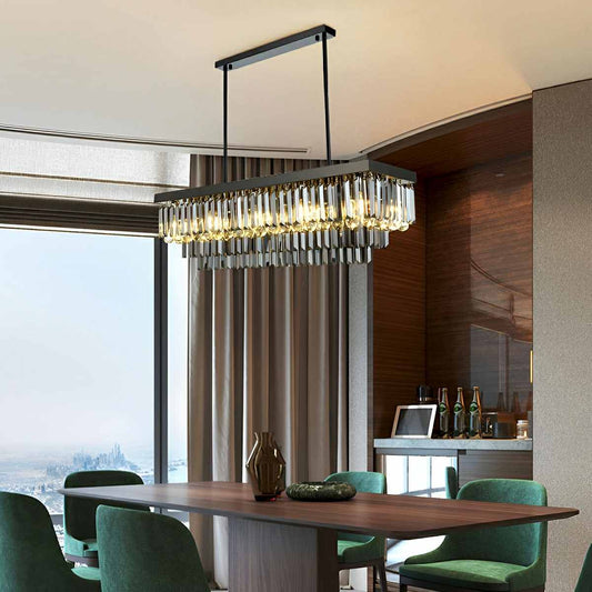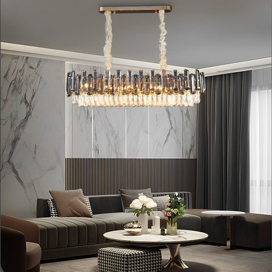 Rectangular Crystal LED 3 Color Modes Smoke Gray Modern Chandelier