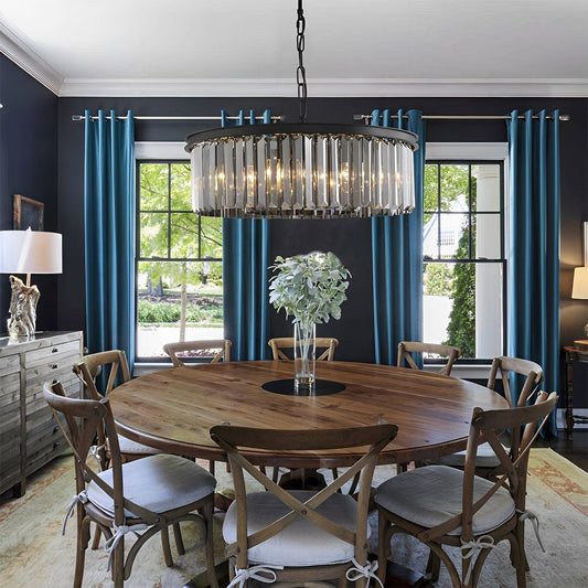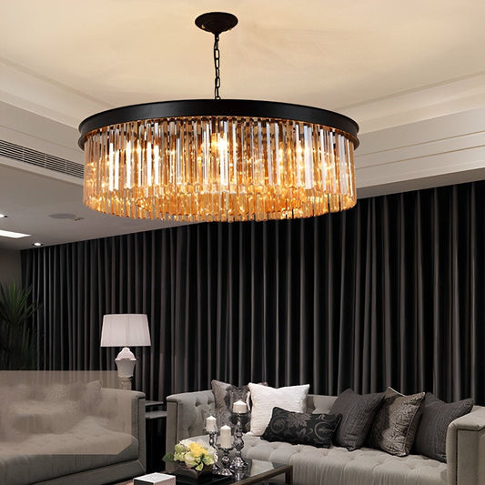Round Metal Crystal Strip Retro Farmhouse Chandelier