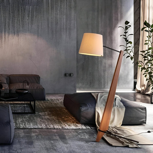 Modern Tilt Wood Fabric Drum Shade Floor Lamp
