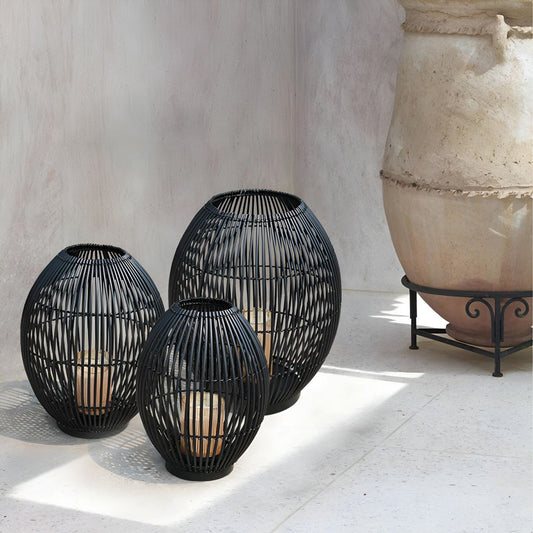 Outdoor Black Handwoven LED Candle Lantern Floor Lamp