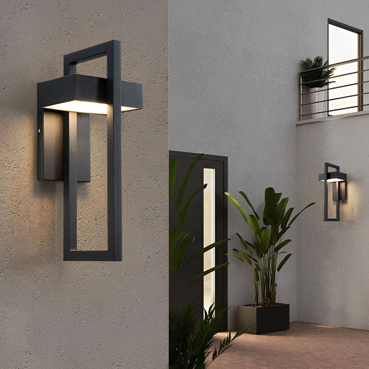 Geometric Rectangular LED Waterproof Black Outdoor Lighting Wall Sconce Lamp