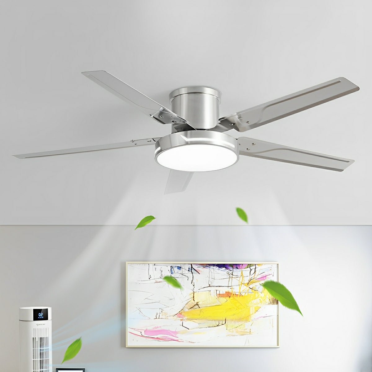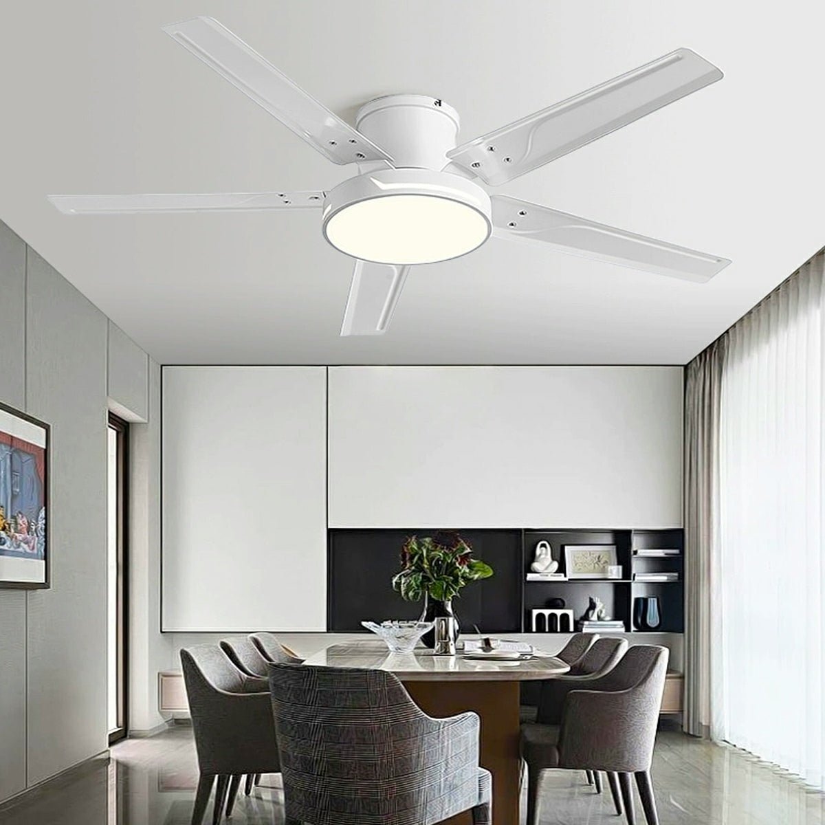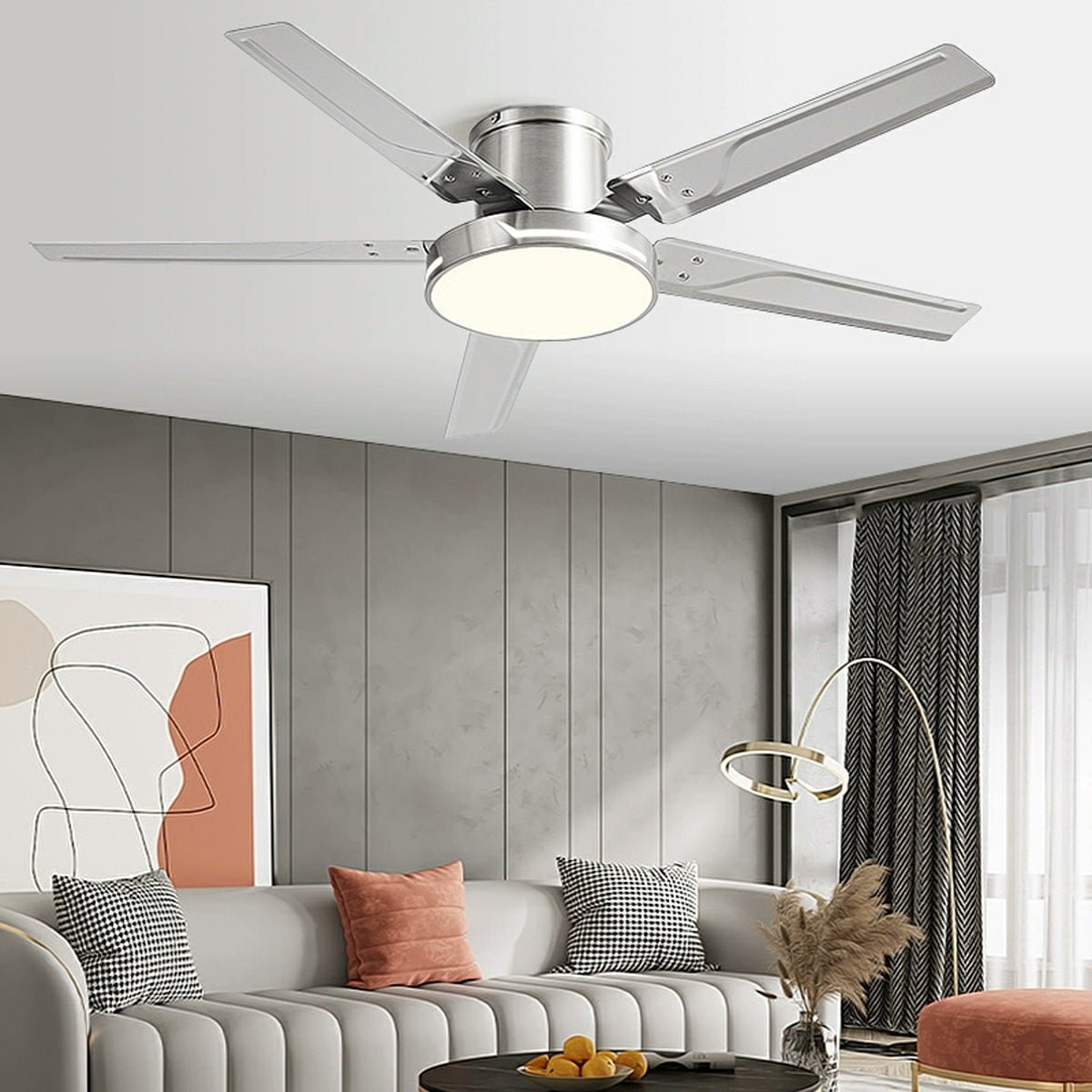 Elevate your home with the stunning Modern Iron Five-leaf 6-Frequency Reverse Dimming Ceiling Fan Light Ceiling Lamp - a masterful blend of modern style and cutting-edge technology.