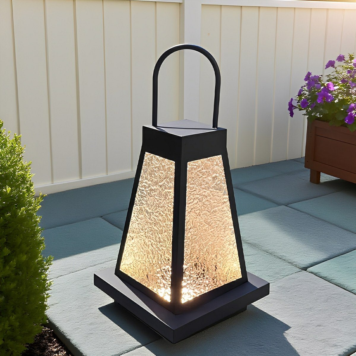 Blending modern waterproof design with a touch of vintage charm, this outdoor LED floor lamp lantern brightens gardens, villas, and patios with a warm white glow. Crafted from stainless steel and acrylic, it offers reliable IP65 protection, solar or hardwired power options, and timeless elegance for outdoor spaces.