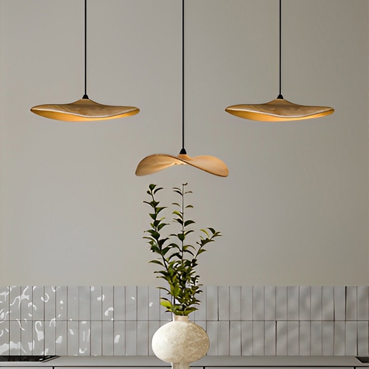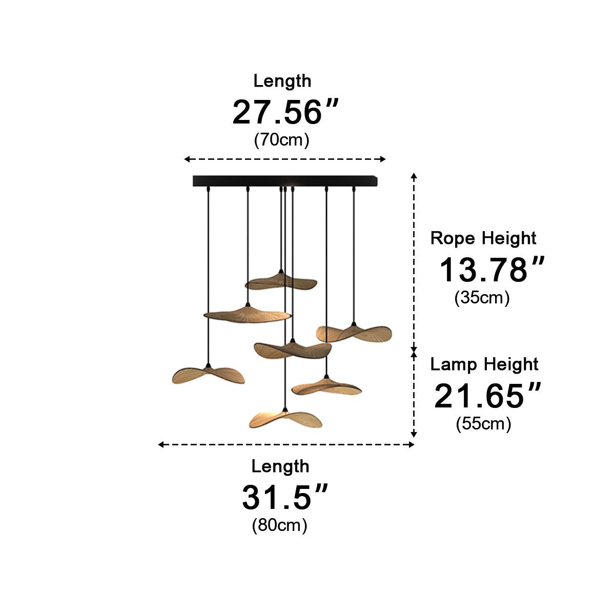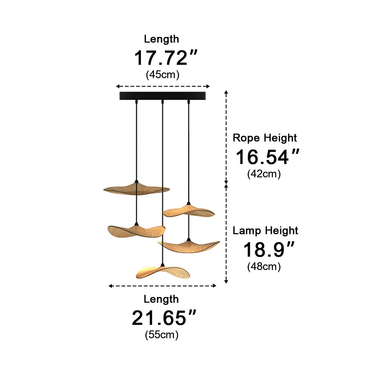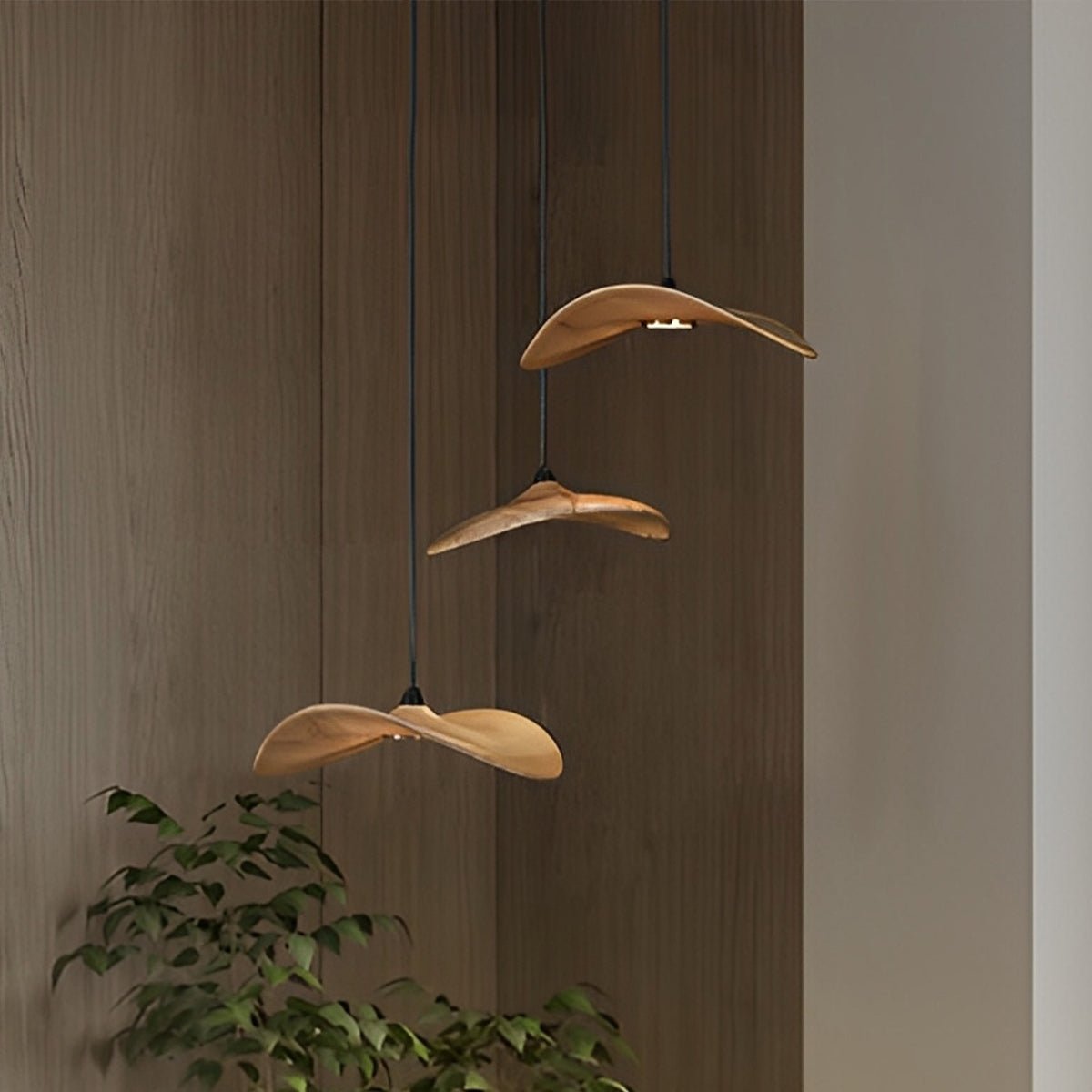 This Modern Natural Wood Style Lotus Leaf LED Pendant Light combines authentic wood elements with sleek metal and PMMA, creating a warm yet contemporary ambiance. With adjustable height up to 39.3", and efficient LED Lamp Beads ranging from 5W to 50W, it suits various spaces like dining rooms, living rooms, bars, and kitchens.