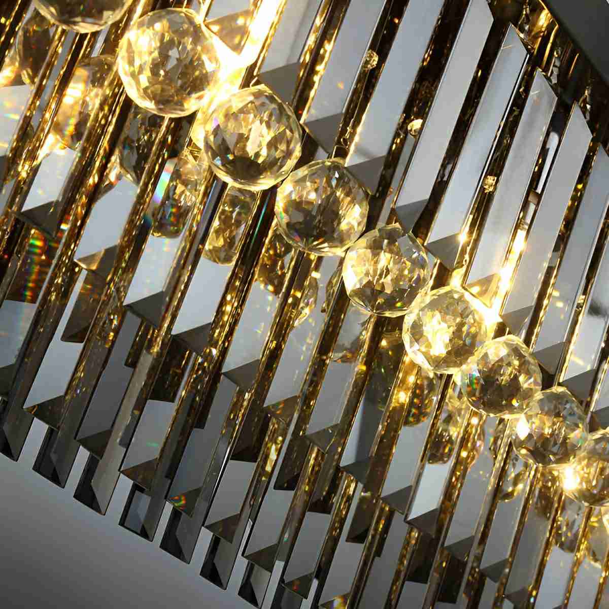 Rectangular Crystal LED 3 Color Modes Smoke Gray Modern Chandelier