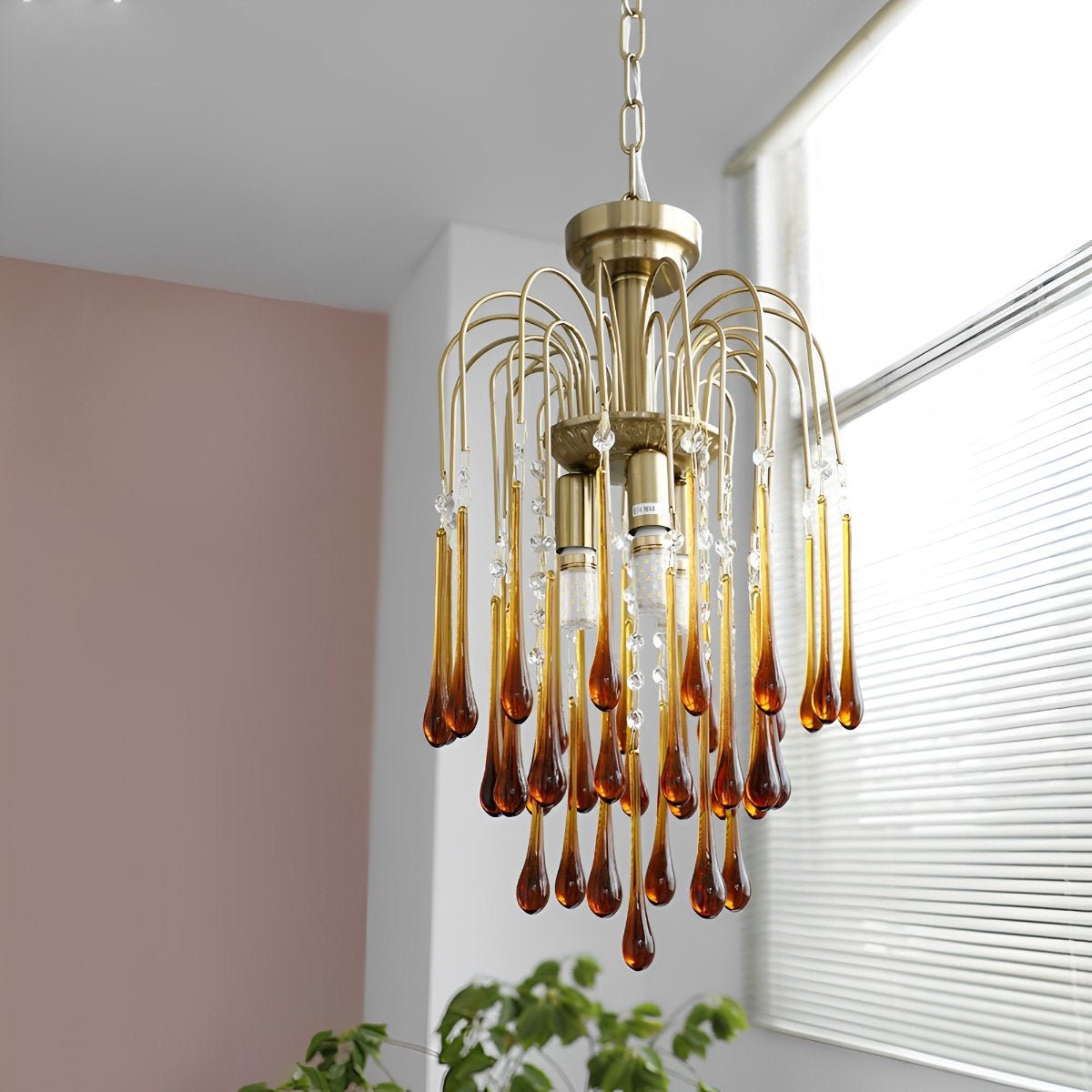 Retro Gold Linear Teardrop Crystal Chandeliers