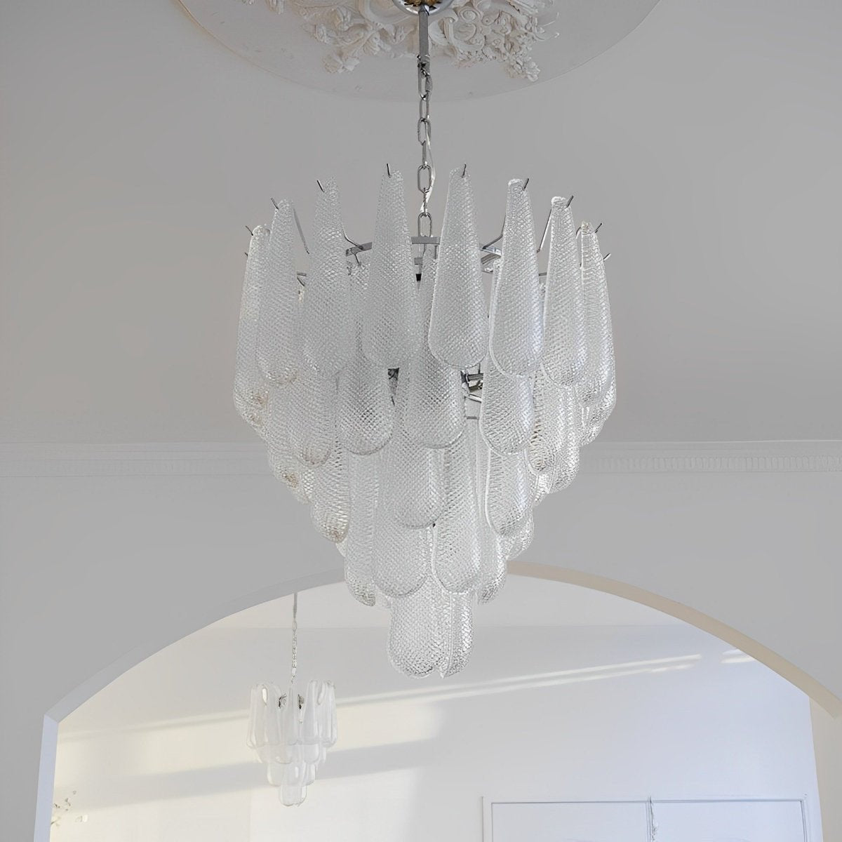Enter into a whole new world of beautiful and warm light with this amazing multi-layer teardrop waterfall chandelier. The unique design of this masterpiece makes it look like a waterfall of light. Premium quality selected glass is skilfully designed in a way that looks like a droplet of water. The glass structure beautifully catches and refracts the light in all directions. Whenever you look at this masterpiece in your living room or bedroom, it will boost your mood and remind you of the power of creativity.