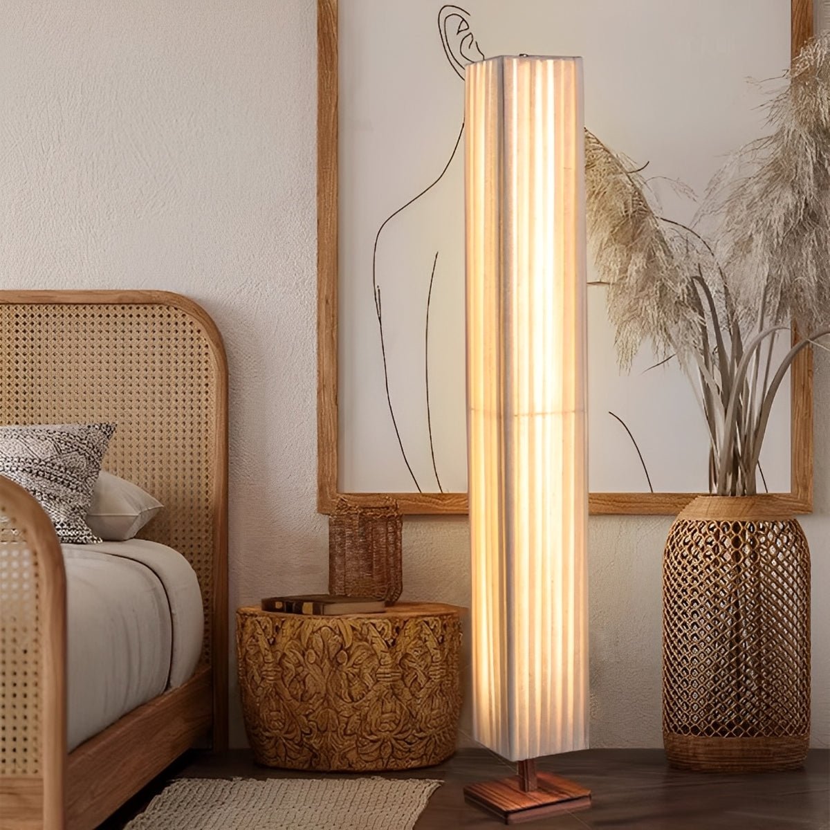 This vintage-inspired floor lamp combines natural wood and soft fabric in a tall column design, offering a warm, architectural glow for cozy interiors. Available in 47" or 63" heights, it delivers up to 4685 lumens of dimmable LED light in three color temperatures. Plug-in convenience meets timeless materials—ideal for bedrooms, reading corners, or living spaces with rustic or mid-century charm.
