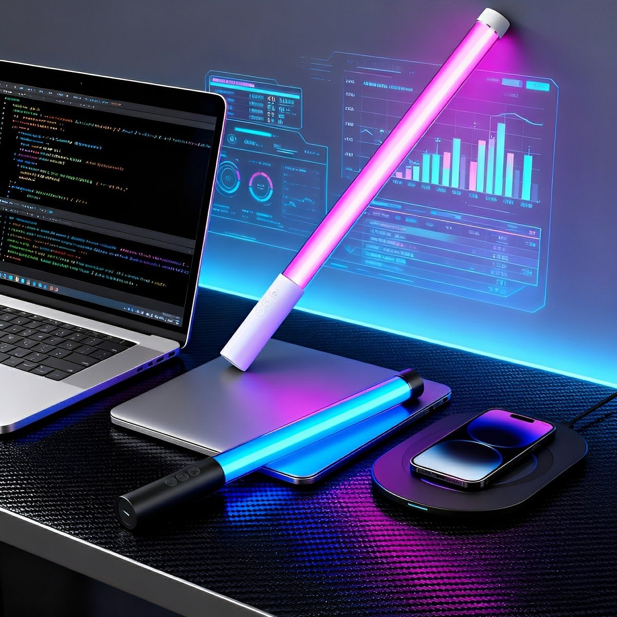 Create immersive vibes anywhere with this wireless 360° RGB LED light stick. Rechargeable and handheld, it’s perfect for gaming rooms, bars, parties, concerts, and creative photography. Adjustable brightness, high CRI>95, and up to 50000h lifespan bring vibrant, dynamic atmosphere lighting.